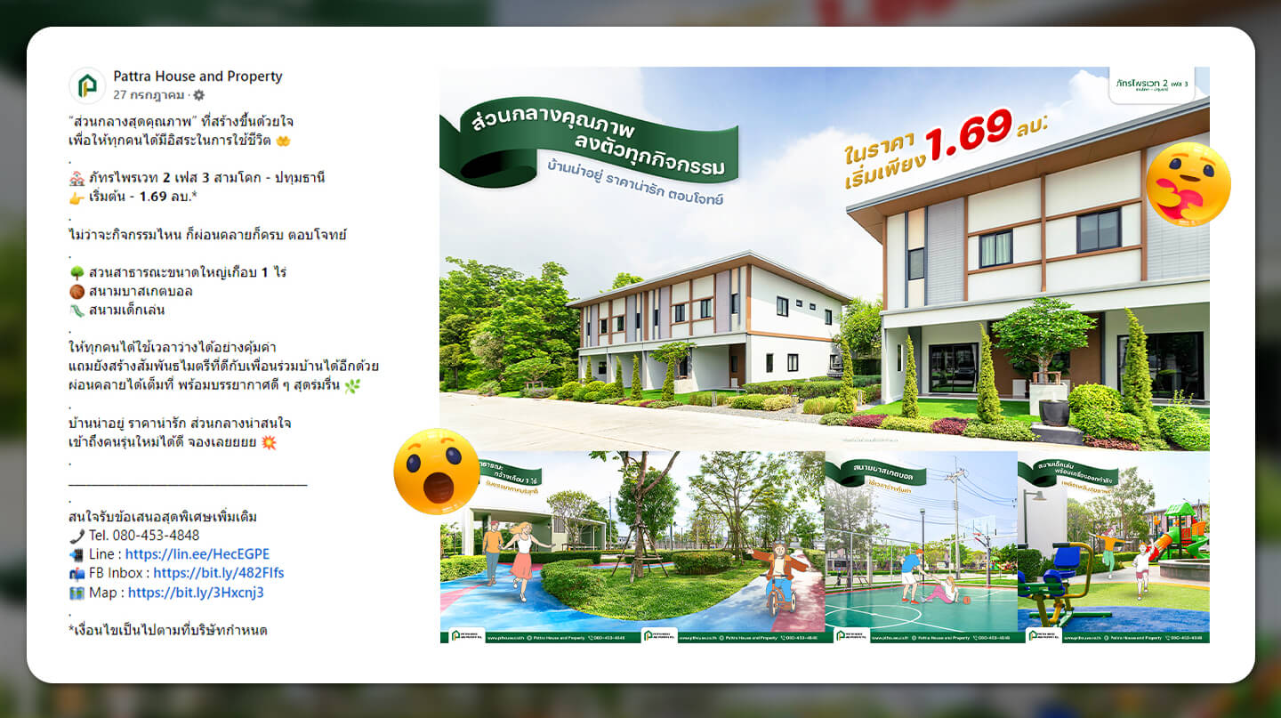 เขียนแคปชั่นที่ดึงดูดตั้งแต่วรรคแรกเพื่อเรียกความสนใจจากผู้บริโภค พร้อมบอกรายละเอียดโครงการที่ชัดเจน พร้อมแนบโปรโมชั่นไว้ในทุก ๆ โพสต์ เพื่อให้ผู้บริโภคได้ซึมซับและรู้สึกจับต้องโปรโมชั่นได้ง่ายมากขึ้น