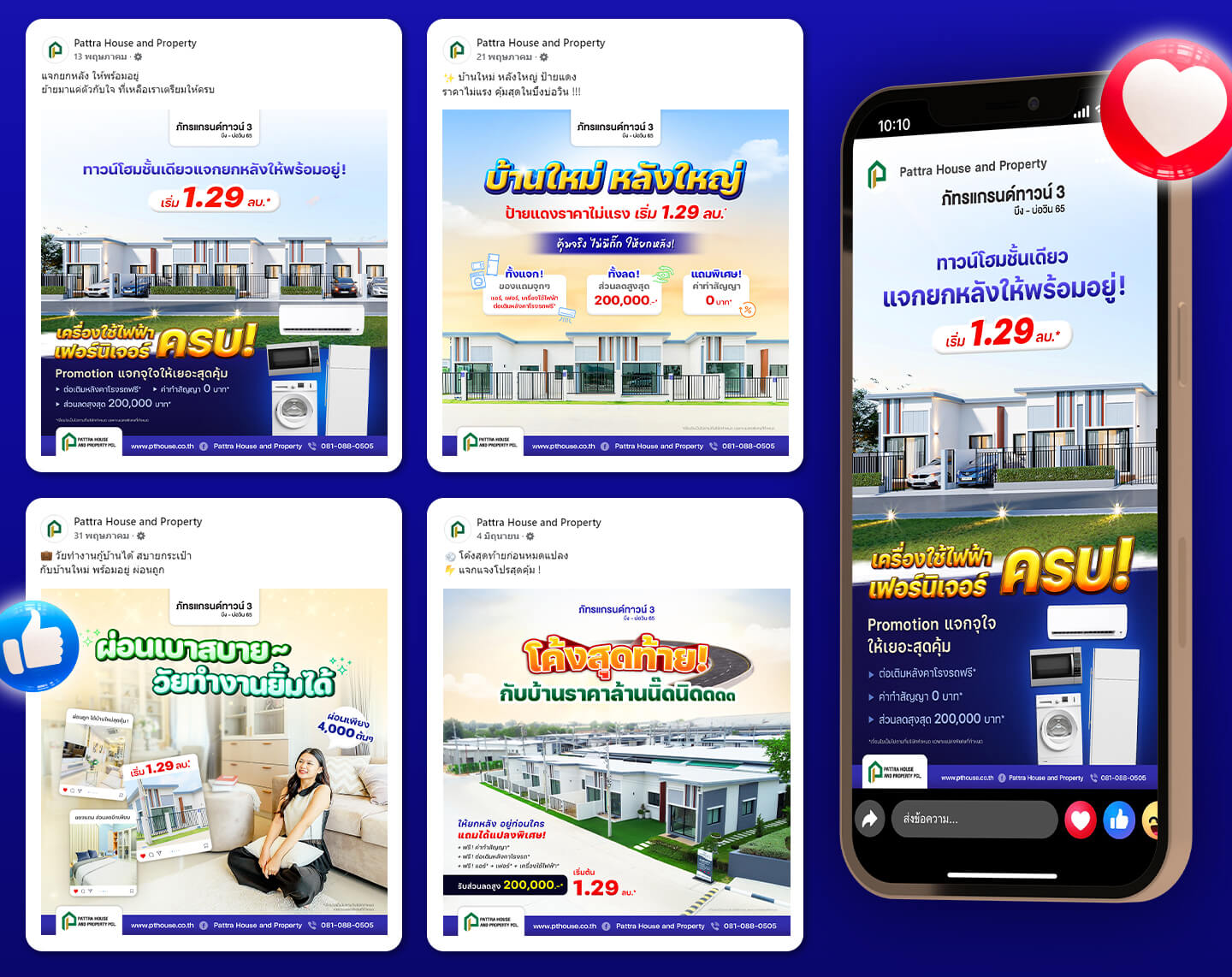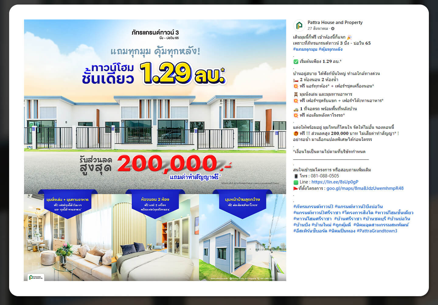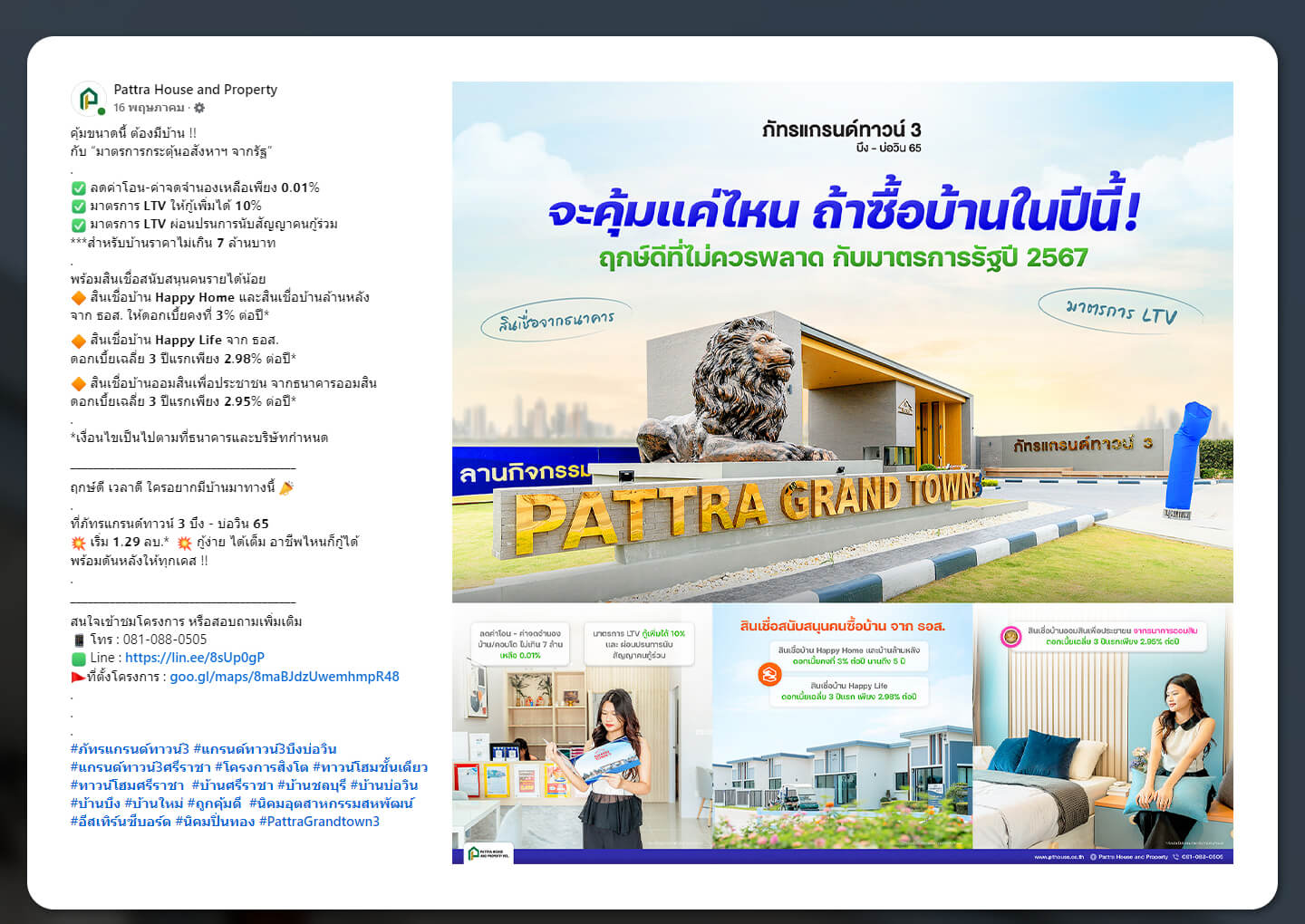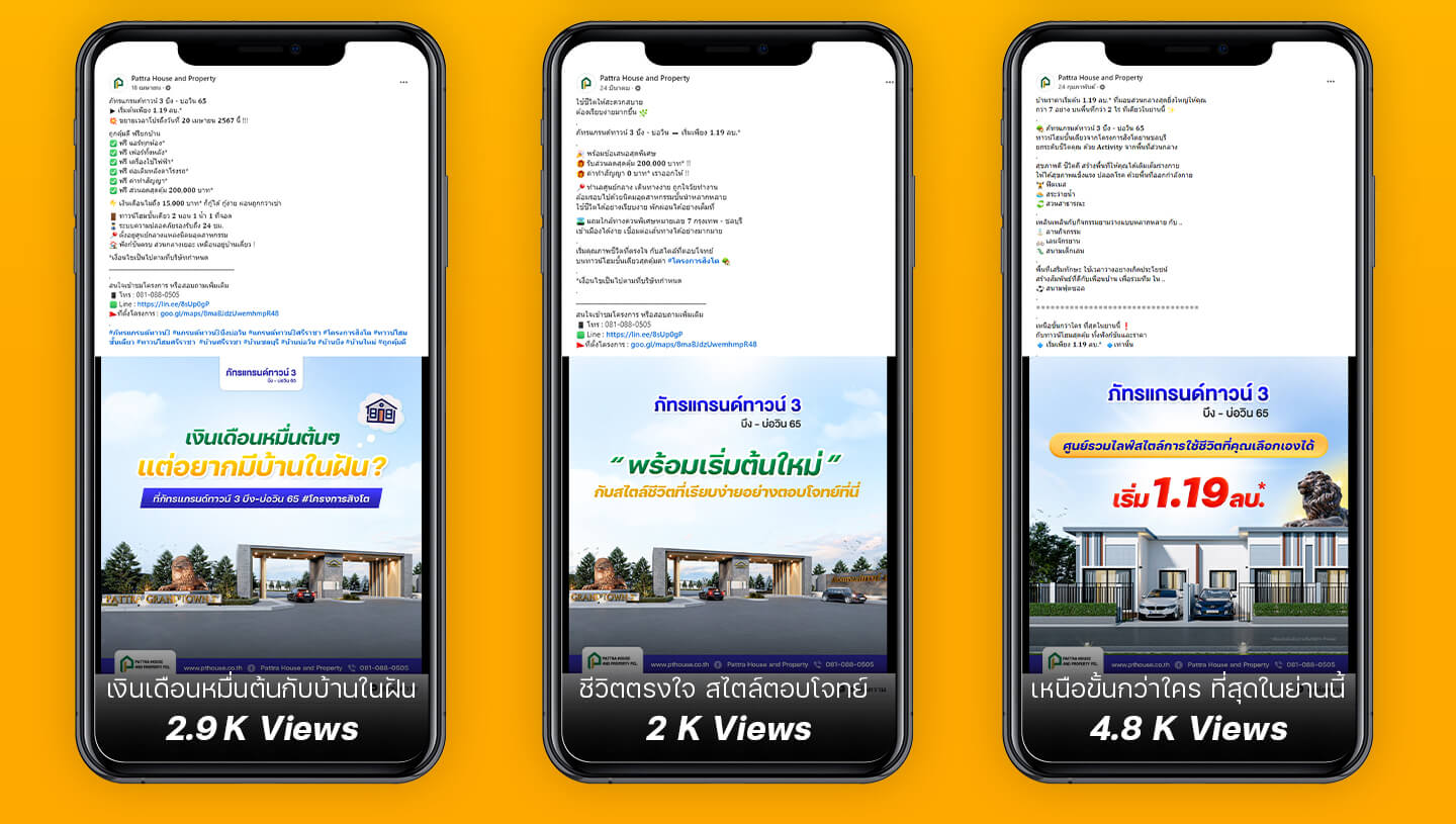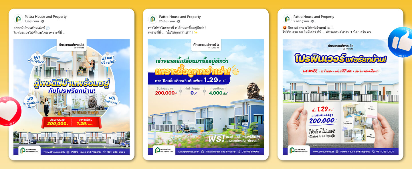 จัดทำโพสต์อย่างสวยงาม และมีรายละเอียดเกี่ยวกับโครงการอย่างชัดเจน รวมถึงข้อมูลการติดต่อสอบถามเพิ่มเติม เพื่อให้ผู้บริโภคสามารถเข้ามาหาข้อมูลที่หน้าเพจเกี่ยวกับโครงการได้อย่างง่ายดายมากขึ้น